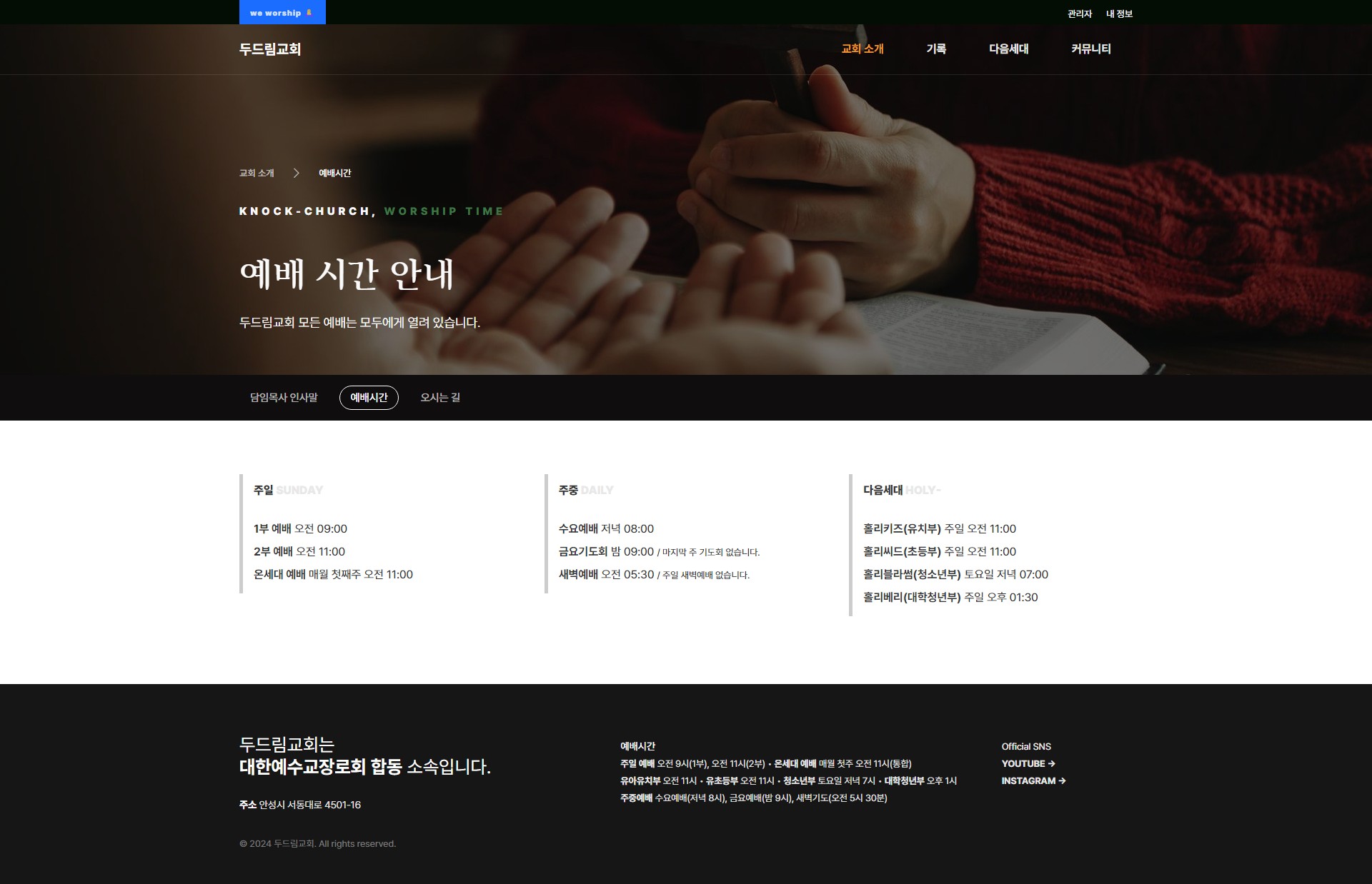 진행한 두드림교회 홈페이지를